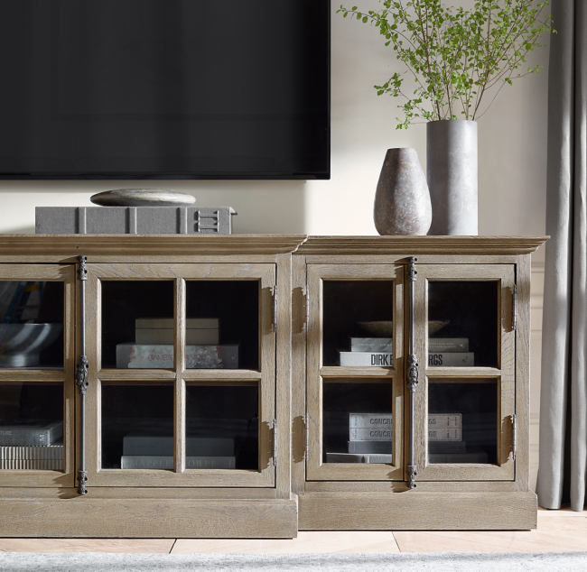 Restoration Hardware Media Cabinet : Restoration Hardware St James Glass Sideboard Original Price 2 327 Design Plus Gallery / Rh members enjoy 25% savings and complimentary design services.. Adjustable levelers provide stability on uneven surfaces. Exterior is quarter sawn red oak and the drawer interiors are red cedar with dovetail construction. 2 cabinets contain adjustable shelves for storage; Design plus gallery presents a restoration hardware reclaimed timber slat media sideboard cabinet. Free shipping on all textiles.