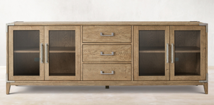 Design plus gallery presents a restoration hardware reclaimed timber slat media sideboard cabinet.